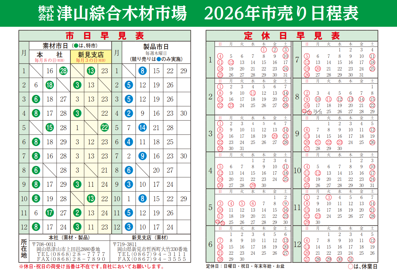 津山綜合木材 2026カレンダーのダウンロードはこちら